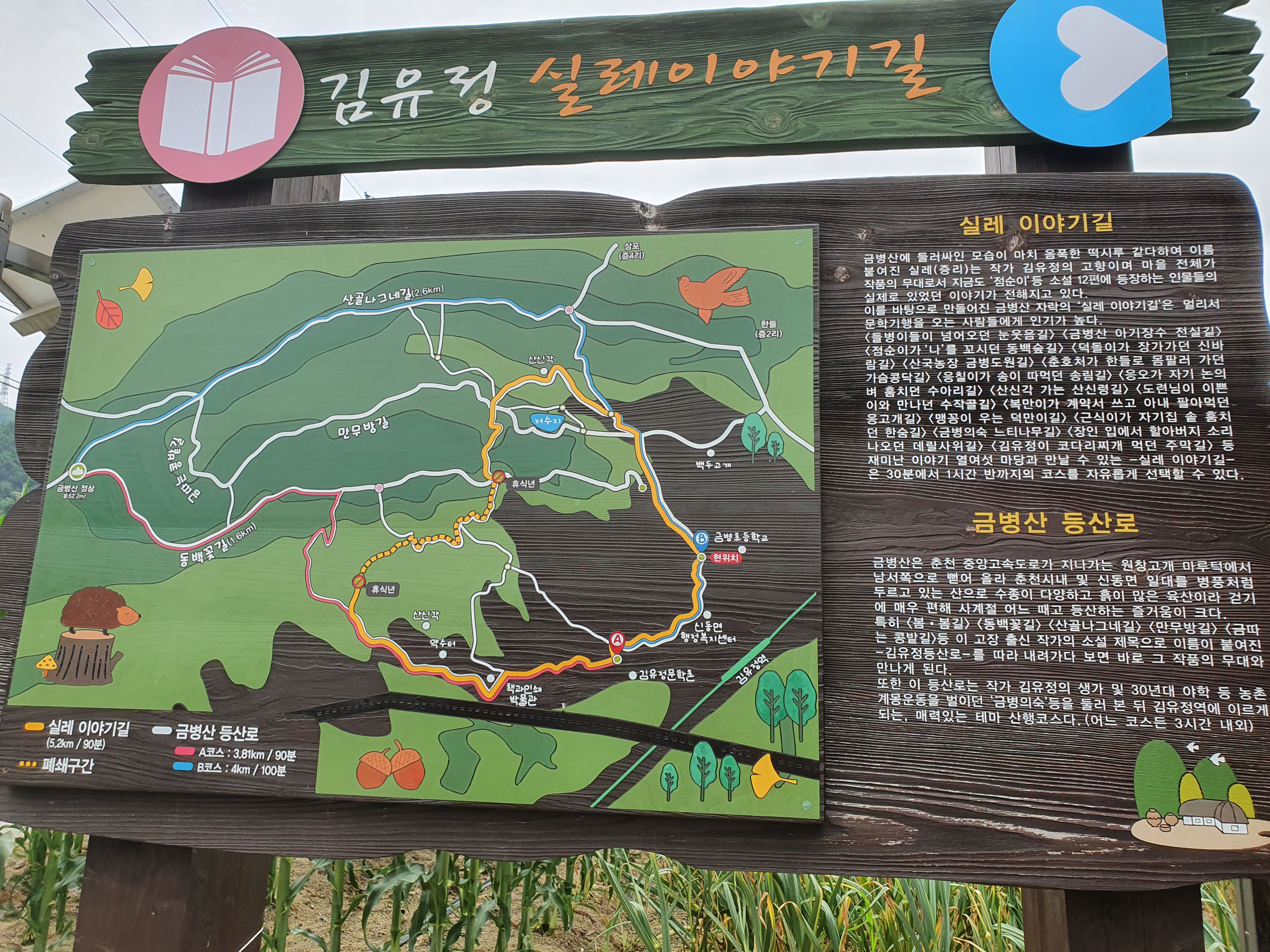 산행코스 : 김유정역 =>산골나그네길=>금병산정상=>동백꽂길=>김유정문학촌=>김유정역